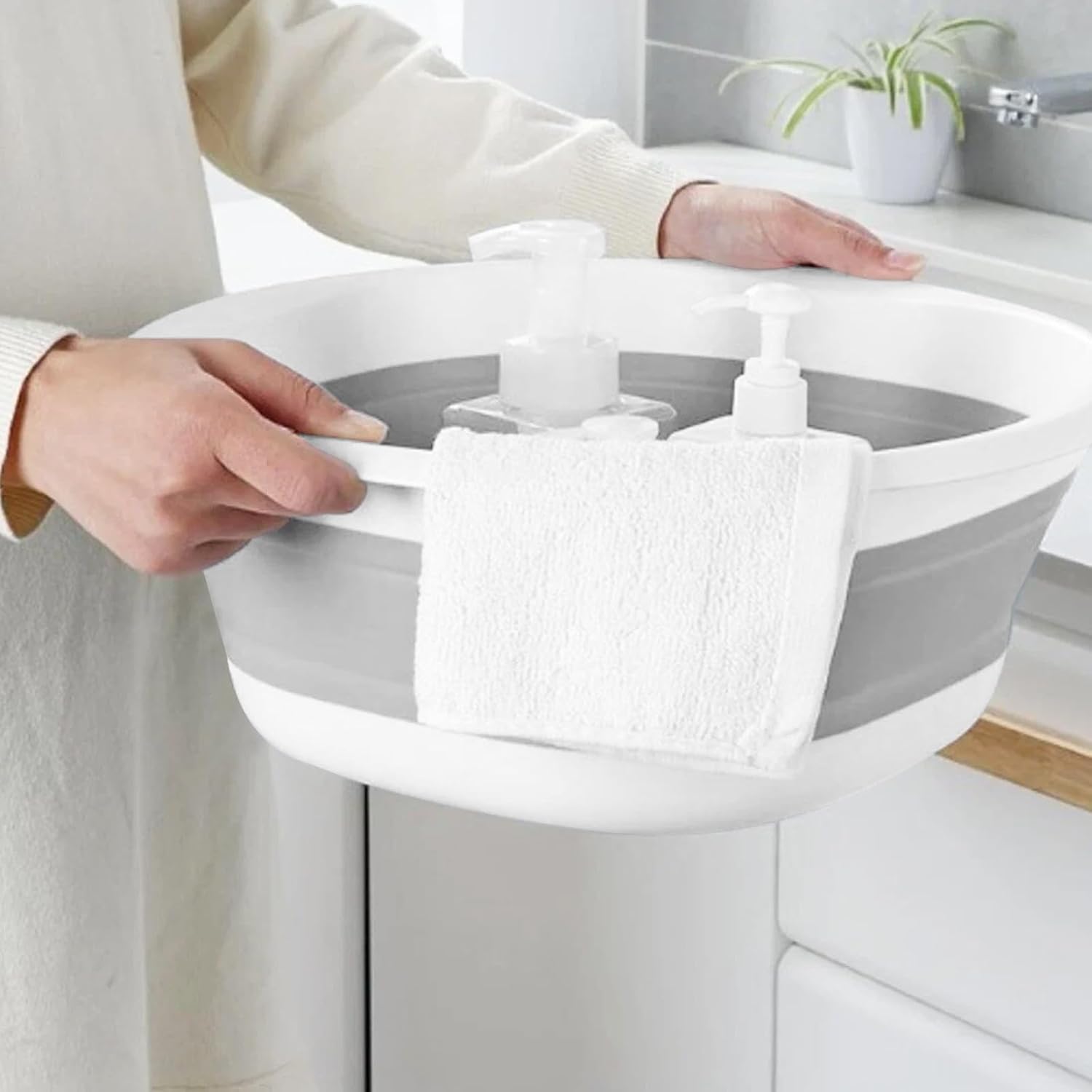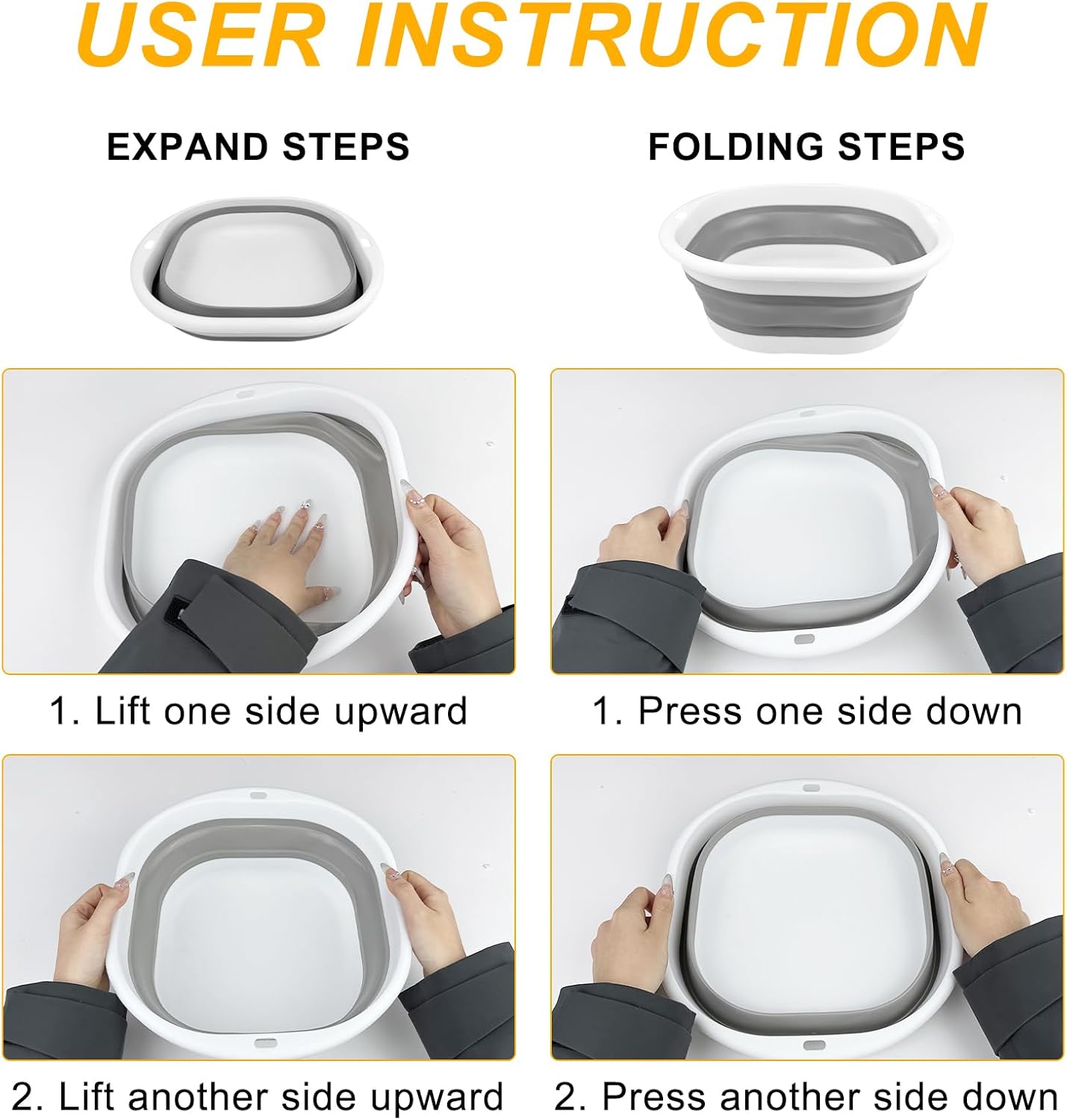 - 【Riceverai】1 Silicone Lavabo grigia. Una volta aperta, misura 30,5 cm X 21 cm X 11 cm e può essere piegata a soli 5 cm di altezza quando non è in uso. Il classico aspetto grigio è semplice e generoso, alla moda e versatile e può essere facilmente integrato in vari ambienti e stili di decorazione.