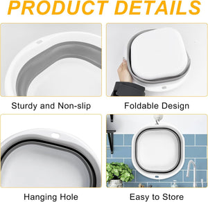 - 【Caratteristiche Portatili】Catino per Bucato La forma complessiva è piccola e leggera ed è dotata di un design a gancio portatile per un facile trasporto. Sia che venga utilizzato in diverse aree al chiuso o per lavare verdure e piedi in attività all'aperto come campeggio e picnic, può essere facilmente sollevato e portato via. Quando non è in uso, può essere piegato e appeso al muro.