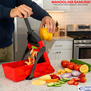 La Vola Home Mandolina Samurai  è l’affettatrice professionale ideale per ottenere tagli precisi, rapidi e sicuri in cucina. Progettata per offrire massima efficienza e versatilità, è dotata di lame in acciaio inox di alta qualità che garantiscono un taglio uniforme e duraturo nel tempo.